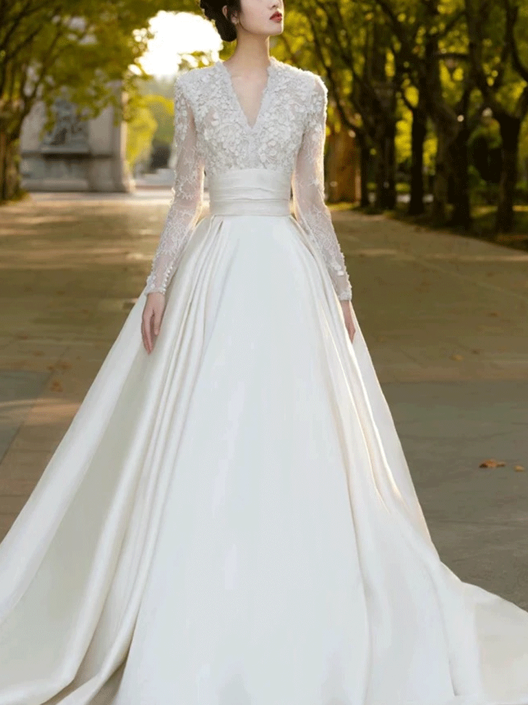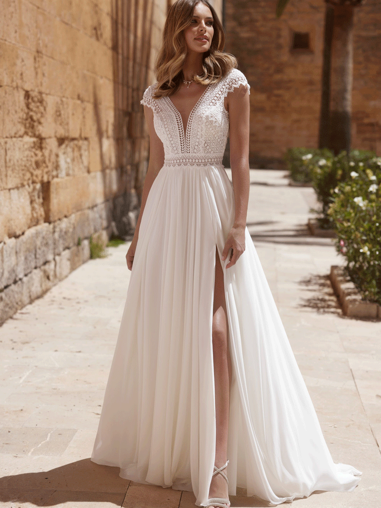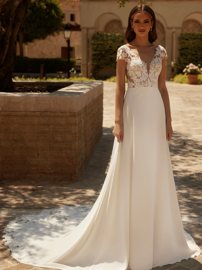 Brautkleider im Schnitt der fließenden A-Linie sind oben eher schmal mit eng anliegendem Oberteil. Der Rock ist dann leicht ausgestellt und der Übergang recht fließend. Die verwendeten Stoffe sind Chiffon, Tüll oder Satin/Seide. A-Linie Brautkleider gelten als Klassiker und sind in jeder Saison auf den Laufstegen der Welt zu finden. Der Schnitt schmeichelt einfach jeder Frau und wirkt sogar besonders vorteilhaft bei sehr schlanken, aber genauso kurvigen Bräuten.