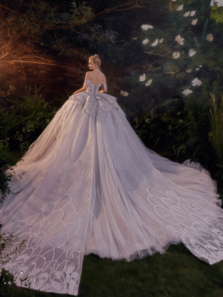 Für den ganz großen Auftritt sorgt bei einem Prinzessin Brautkleid natürlich die Schleppe. Einige Modelle haben nur eine kleine Schleppe, andere eine recht lange, die voll bestickt ist. Eine Schleppe komplettiert den Prinzessinnen Look und lässt die Braut auch von hinten als Braut erkennbar sein.